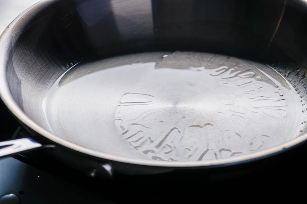 - Preheat the pan first. Put the empty pan on the stove. Heat for 2-3 minutes. Test it: Drop a few water drops. If they dance and slide like balls, the pan is ready. This is called the Leidenfrost effect.