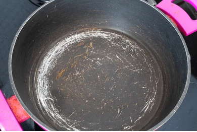 Look at your frying pan. Check for these problems. If you see them, throw it out.
